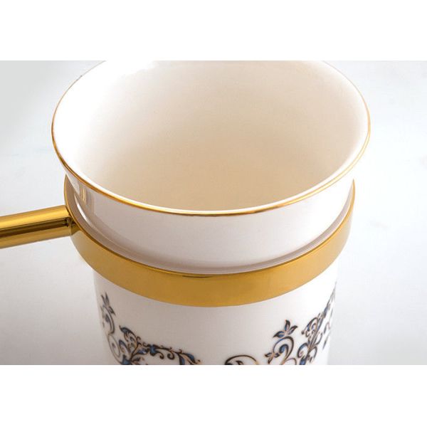 Thick ceramic cup,anti crack,preven damage,stamp golden and blue flower on the toilet brush holder,colorful and beautiful.