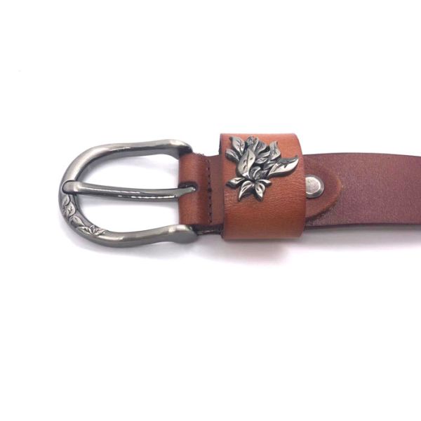 Women's Belt Genuine Leather Belt with Single Prong Alloy Buckle 1”(2.2CM) Wide Strap Tan & Blue Color