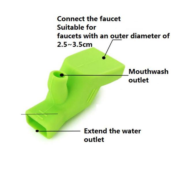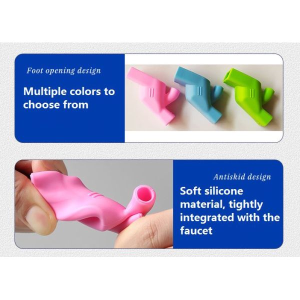 Silicone faucet extension connector, we also vividly call it Silicone frog shoes. It uses environmentally friendly soft silicone material, non-toxic and tasteless, and can be in close contact with the human body. When it is connected to the faucet, it can be convenient for children to wash their hands. We can also pinch the water outlet to let someone eject from the upper outlet, which is convenient for us to rinse our mouth.