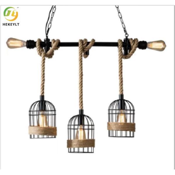 Vintage metal cage hemp rope bulb light glass crystal chandelier for sale