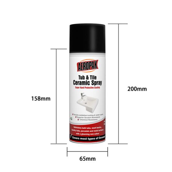 Aeropak Tub & Tile Ceramic Spray Paint is made of terpolymer system. The dry paint film will be about 3H hard after 3 hours dry. Aeropak Nano Ceramic Paint is mainly used on hard materials such as ceramic, porcelain, glass, stone, steel, aluminum, etc. It is NOT suggested to use on soft materials.